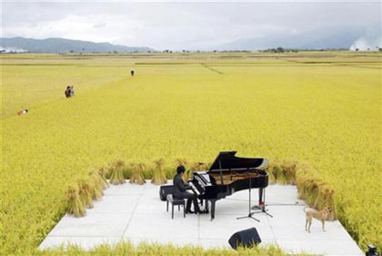 کنسرت پیانو نوازنده معروف کوان یو در یک مزرعه