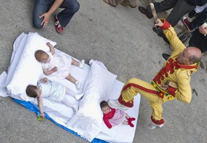 جشن کهن پریدن از روی بچه ها( El Colacho) در اسپانیا برای دور کردن ارواح شیطانی.